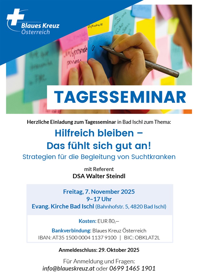 Für Anmeldung und Fragen: info@blaueskreuz.at oder 0699 1465 1901